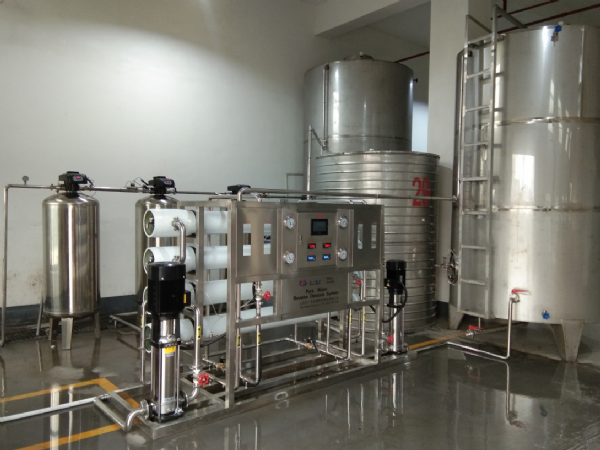 江蘇某酒業公司全不銹鋼反滲透設備安裝調試完成1.雙級反滲透:原水(自來水、地表水、地下水)加壓送至預處理系統粗過濾,再進入過濾器過濾后,通過一級高壓泵加壓送至一級反滲透系統,該系統產出的水再由二級高壓